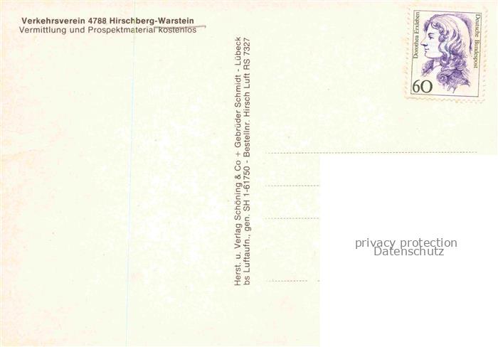 74110491 alte Postkarte Hirschberg Warstein NRW Fliegeraufnahme postalisch gelaufen Erhaltung siehe scans [WerneD78] KatCode: 11110005974044