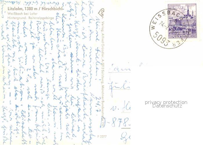 72915129 alte Postkarte Hirschbichl Wasserburg Inn Litzalm Weissbach bei Lofer mit Reiteralpgebirge postalisch gelaufen Erhaltung siehe scans [LiesaD40] KatCode: 11110009175136