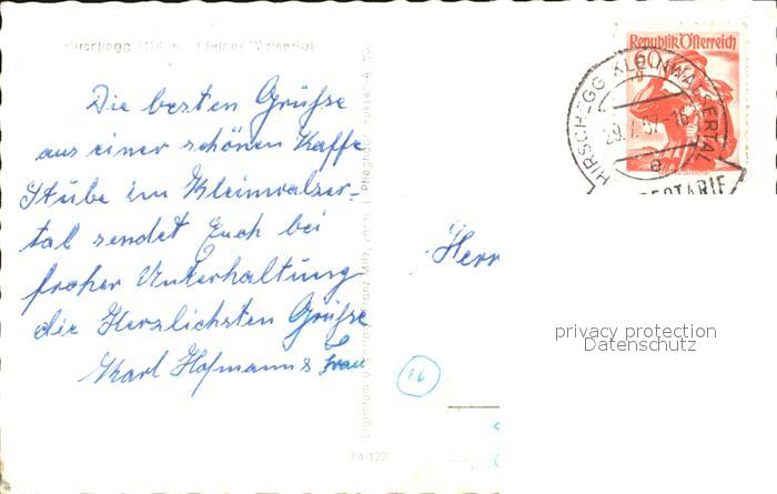 12393086 alte Postkarte Hirschegg Kleinwalsertal Vorarlberg postalisch gelaufen Erhaltung siehe scans KatCode: 11390