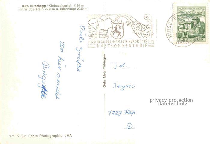 74016875 alte Postkarte Hirschegg Kleinwalsertal Vorarlberg AT mit Widderstein und Baerenkopf postalisch gelaufen Erhaltung siehe scans [WerneD78] KatCode: 11390