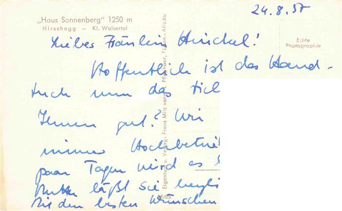 73973307 Hirschegg Kleinwalsertal Vorarlberg AT Pension Haus Sonnenberg postalisch nicht gelaufen Erhaltung siehe scans [FriedD77] KatCode: 11390
