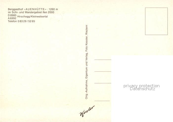 13218179 Hirschegg Kleinwalsertal Vorarlberg Auenhuette Berggasthof postalisch nicht gelaufen Erhaltung siehe scans [LiesaD40] KatCode: 11390