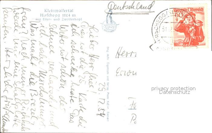 71921172 alte Postkarte Hirschegg Kleinwalsertal Vorarlberg Elfer Zwoelferkopf postalisch gelaufen Erhaltung siehe scans KatCode: 11390