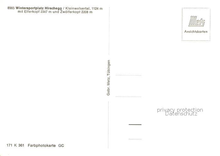 73270306 Hirschegg Kleinwalsertal Vorarlberg Elferkopf Zwoelferkopf postalisch nicht gelaufen Erhaltung siehe scans [PaolaD17] KatCode: 11390