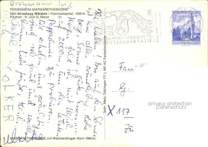 72011456 alte Postkarte Hirschegg Kleinwalsertal Vorarlberg Ferienheim Margarethenhoehe postalisch gelaufen KatCode: 11390