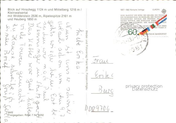 12514082 alte Postkarte Hirschegg Kleinwalsertal Vorarlberg Fliegeraufnahme postalisch gelaufen Erhaltung siehe scans KatCode: 11390