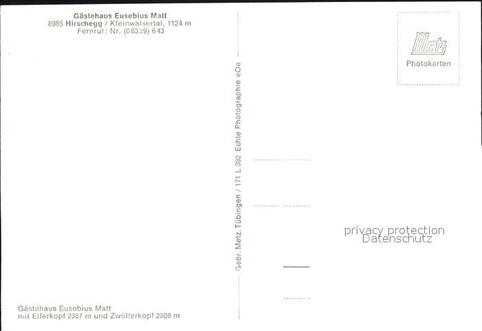 72476670 Hirschegg Kleinwalsertal Vorarlberg Gaestehaus Eusebius Matt postalisch nicht gelaufen Erhaltung siehe scans KatCode: 11390