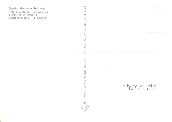 12983775 Hirschegg Kleinwalsertal Vorarlberg Gasthof Pension Schuster postalisch nicht gelaufen Erhaltung siehe scans [AndreD76] KatCode: 11390