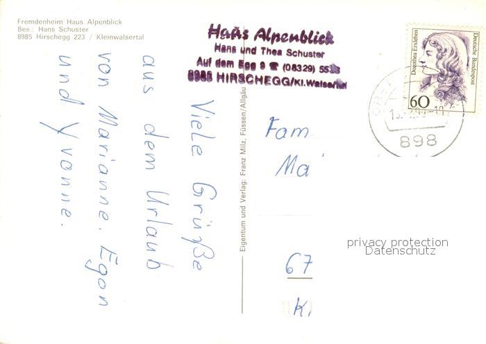 73522929 alte Postkarte Hirschegg Kleinwalsertal Vorarlberg Haus Alpenblick postalisch gelaufen Erhaltung siehe scans [LiesaD40] KatCode: 11390
