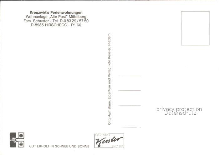 72518162 Hirschegg Kleinwalsertal Vorarlberg Kreuzwirt’s Ferienwohnungen Wohnanlage Alte Post Mittelberg postalisch nicht gelaufen Erhaltung siehe scans KatCode: 11390
