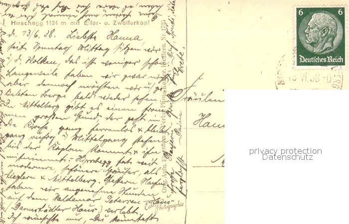 43036857 alte Postkarte Hirschegg Kleinwalsertal Vorarlberg Landschaftspanorama mit Elferkopf und Zwoelferkopf Allgaeuer Alpen postalisch gelaufen Erhaltung siehe scans [FriedD77] KatCode: 11390