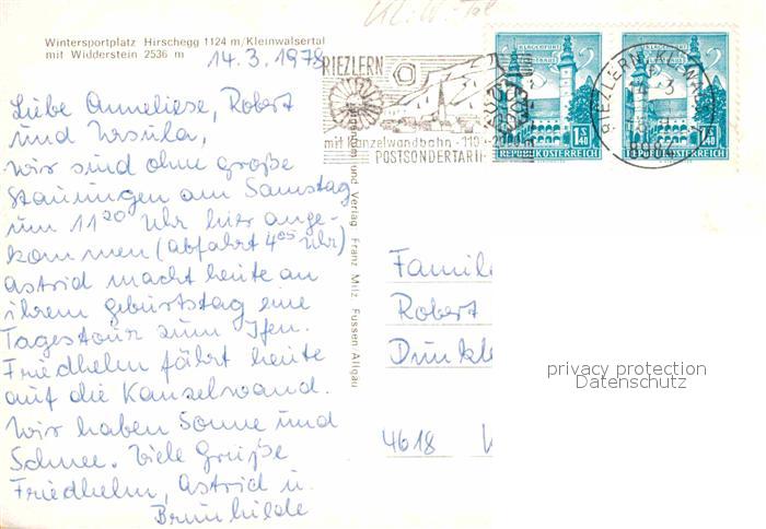 72800974 alte Postkarte Hirschegg Kleinwalsertal Vorarlberg Panorama Wintersportplatz mit Widderstein postalisch gelaufen Erhaltung siehe scans [FriedD77] KatCode: 11390