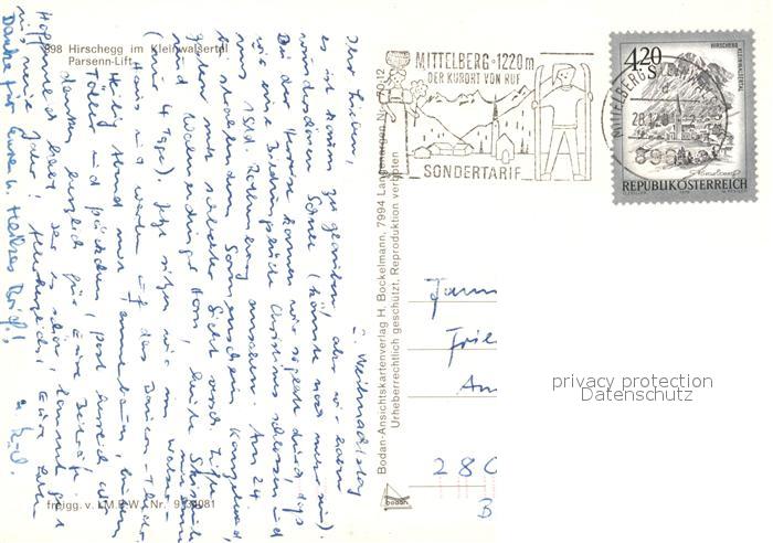 73492660 alte Postkarte Hirschegg Kleinwalsertal Vorarlberg Parsenn Lift Fliegeraufnahme postalisch gelaufen Erhaltung siehe scans [WerneD78] KatCode: 11390