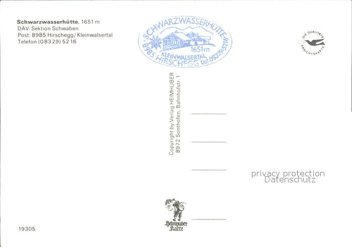 71952971 Hirschegg Kleinwalsertal Vorarlberg Schwarzwasser Huette postalisch nicht gelaufen KatCode: 11390