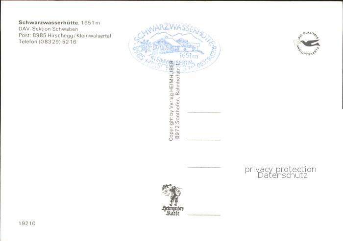 71822766 Hirschegg Kleinwalsertal Vorarlberg Schwarzwasserhuette DAV-Sektion Schwaben postalisch nicht gelaufen Erhaltung siehe scans KatCode: 11390