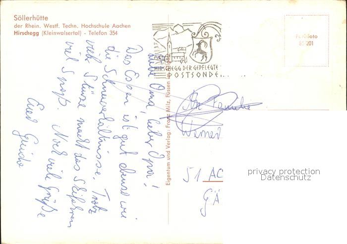 72581743 Hirschegg Kleinwalsertal Vorarlberg Soellerhuette postalisch nicht gelaufen Erhaltung siehe scans [LiesaD40] KatCode: 11390
