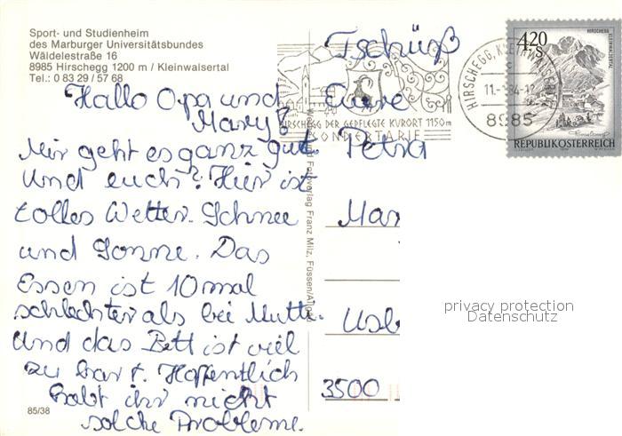 13155013 alte Postkarte Hirschegg Kleinwalsertal Vorarlberg Sport und Studienheim des Marburger Universitaetsbundes postalisch gelaufen Erhaltung siehe scans [FriedD77] KatCode: 11390