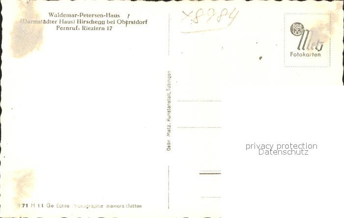 11799083 Hirschegg Kleinwalsertal Vorarlberg Waldemar Petersen Haus postalisch nicht gelaufen Erhaltung siehe scans KatCode: 11390
