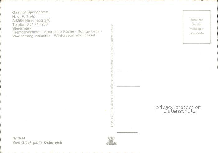 72483762 Hirschegg Steiermark Gasthof Spengerwirt Fremdenzimmer Restaurant Landschaft Kuehe postalisch nicht gelaufen Erhaltung siehe scans KatCode: 11390225061607