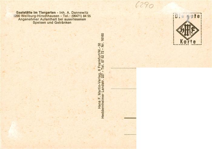 73890756 Hirschhausen Oberlahnkreis Gaststaette im Tiergarten Gondelteich Kaminzimmer Gastraeume postalisch nicht gelaufen Erhaltung siehe scans [WerneD78] KatCode: 11110006533017