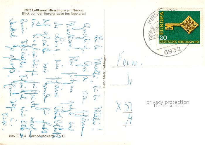 73056889 alte Postkarte Hirschhorn Neckar Burgterrasse Neckartal postalisch gelaufen Erhaltung siehe scans [WerneD78] KatCode: 11110006431012