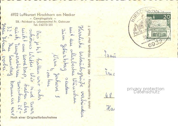 71926787 alte Postkarte Hirschhorn Neckar Campingplatz Luftkurort postalisch gelaufen Erhaltung siehe scans KatCode: 11110006431012