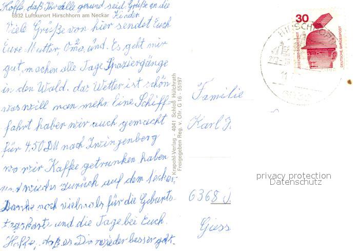 73213134 alte Postkarte Hirschhorn Neckar Fliegeraufnahme postalisch gelaufen Erhaltung siehe scans [PaolaD17] KatCode: 11110006431012