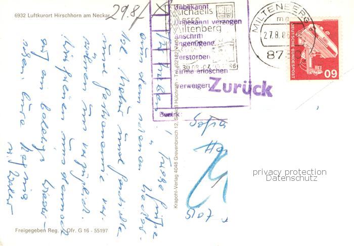 73761208 alte Postkarte Hirschhorn Neckar Fliegeraufnahme postalisch gelaufen Erhaltung siehe scans [WerneD78] KatCode: 11110006431012