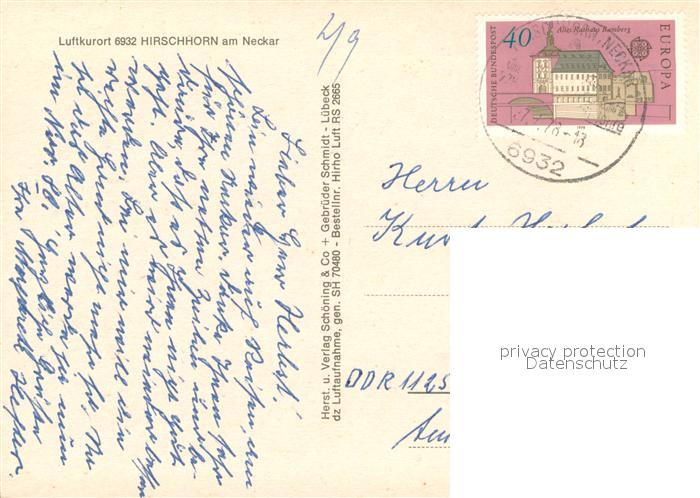 73724864 alte Postkarte Hirschhorn Neckar Fliegeraufnahme postalisch gelaufen Erhaltung siehe scans [WerneD78] KatCode: 11110006431012