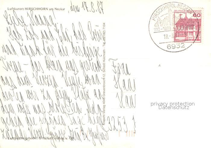 73689673 alte Postkarte Hirschhorn Neckar Fliegeraufnahme postalisch gelaufen Erhaltung siehe scans [WerneD78] KatCode: 11110006431012