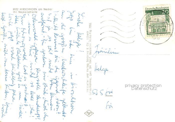 73139366 alte Postkarte Hirschhorn Neckar Fliegeraufnahme Neckarschleife postalisch gelaufen Erhaltung siehe scans [NatalD47] KatCode: 11110006431012