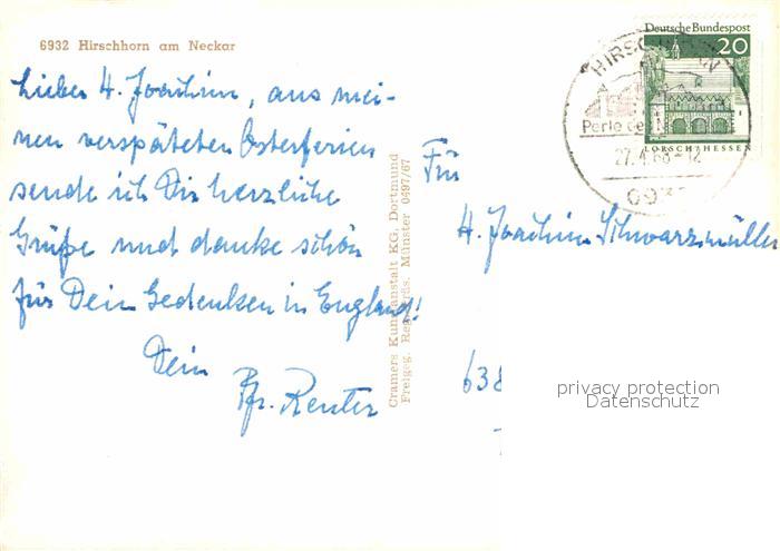 72792301 alte Postkarte Hirschhorn Neckar Fliegeraufnahme Neckarschleife postalisch gelaufen Erhaltung siehe scans [LiesaD40] KatCode: 11110006431012
