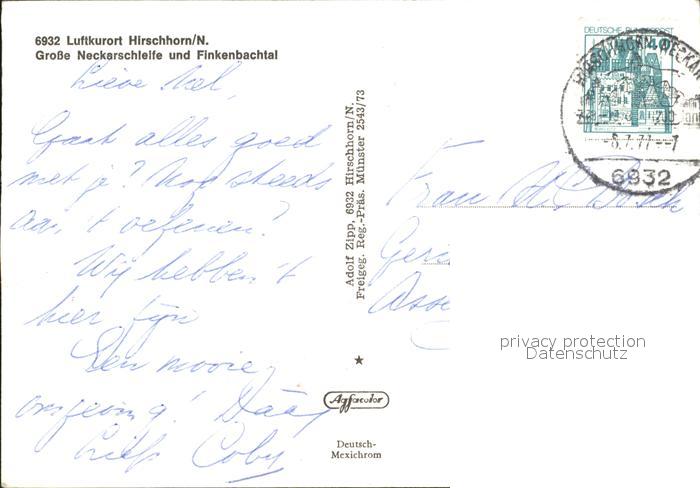 72308418 alte Postkarte Hirschhorn Neckar Gr Neckarschleife und Finkenbachtal Fliegeraufnahme postalisch gelaufen Erhaltung siehe scans KatCode: 11110006431012