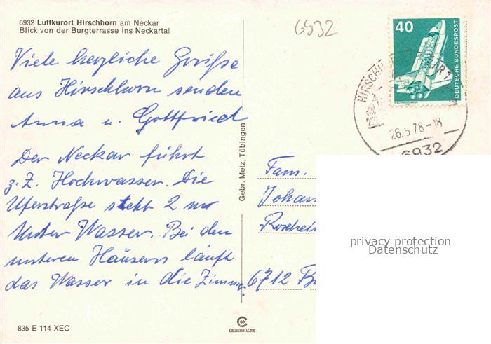 74047626 alte Postkarte Hirschhorn Neckar Hessen Blick von der Burgterrasse ins Neckartal postalisch gelaufen Erhaltung siehe scans [WerneD78] KatCode: 11110006431012