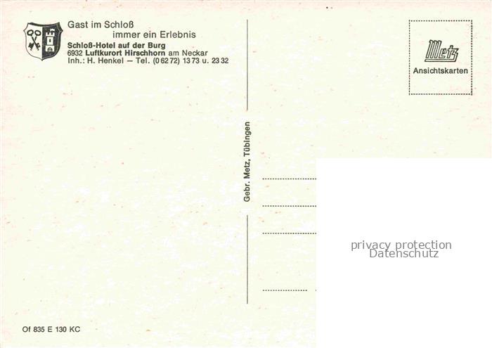 74047754 Hirschhorn Neckar Hessen Blick von der Schloss Hotel Terrasse auf Burg Hirschhorn und Neckar postalisch nicht gelaufen Erhaltung siehe scans [WerneD78] KatCode: 11110006431012