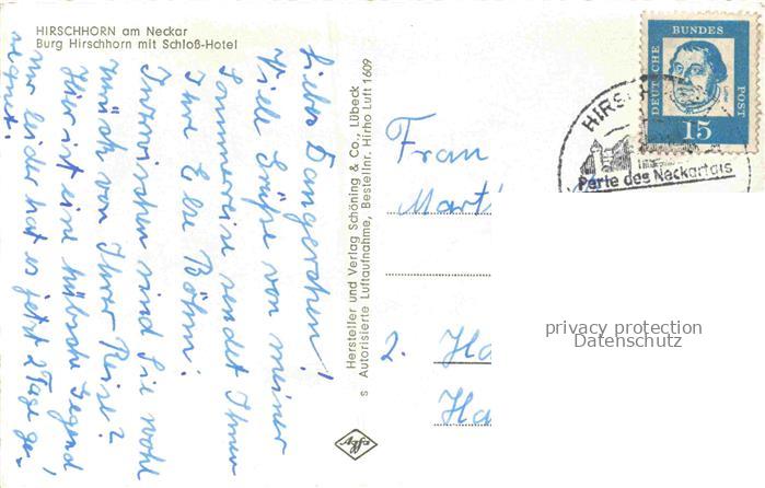 74153406 alte Postkarte Hirschhorn Neckar Hessen Burg Hirschhorn mit Schlosshotel postalisch gelaufen Fliegeraufnahme Erhaltung siehe scans [FriedD77] KatCode: 11110006431012