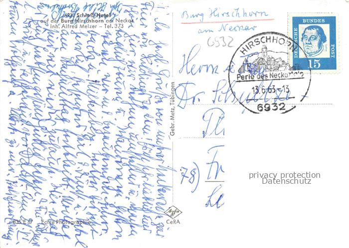 74047707 alte Postkarte Hirschhorn Neckar Hessen Burg Hirschhorn Schloss Hotel postalisch gelaufen Erhaltung siehe scans [WerneD78] KatCode: 11110006431012