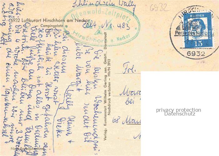 74047778 alte Postkarte Hirschhorn Neckar Hessen Campingplatz postalisch gelaufen Erhaltung siehe scans [WerneD78] KatCode: 11110006431012