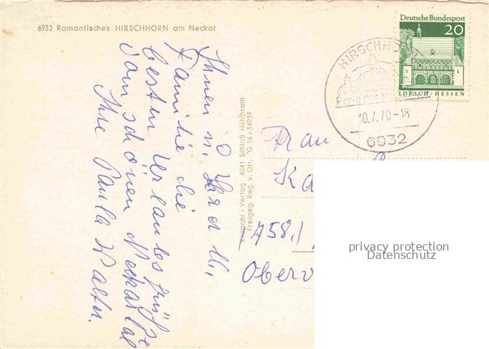 74047652 alte Postkarte Hirschhorn Neckar Hessen Fliegeraufnahme Neckarschleife postalisch gelaufen Erhaltung siehe scans [WerneD78] KatCode: 11110006431012
