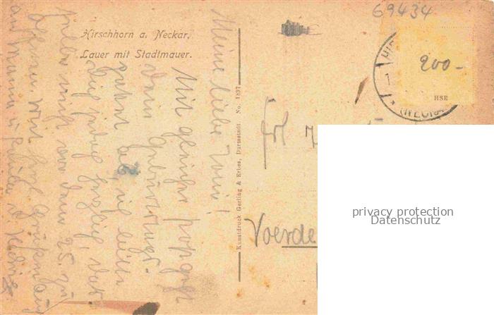 74067987 alte Postkarte Hirschhorn Neckar Hessen Lauer mit Stadtmauer Kuenstlerkarte postalisch gelaufen Erhaltung siehe scans [FriedD77] KatCode: 11110006431012