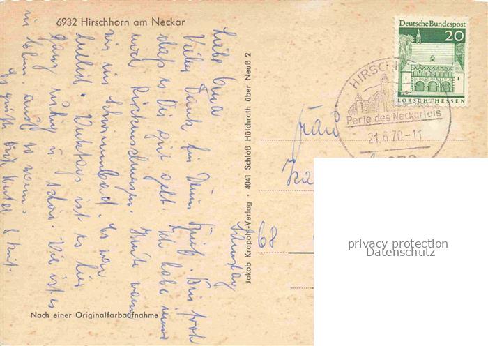 74047643 alte Postkarte Hirschhorn Neckar Hessen Neckarpartie postalisch gelaufen Erhaltung siehe scans [WerneD78] KatCode: 11110006431012