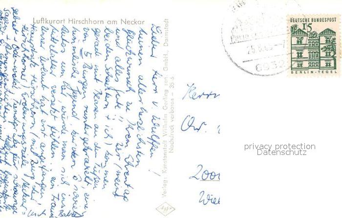 72978932 alte Postkarte Hirschhorn Neckar Luftkurort Fliegeraufnahme postalisch gelaufen Erhaltung siehe scans [FriedD77] KatCode: 11110006431012