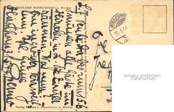 72098013 alte Postkarte Hirschhorn Neckar Schloss postalisch gelaufen Erhaltung siehe scans KatCode: 11110006431012