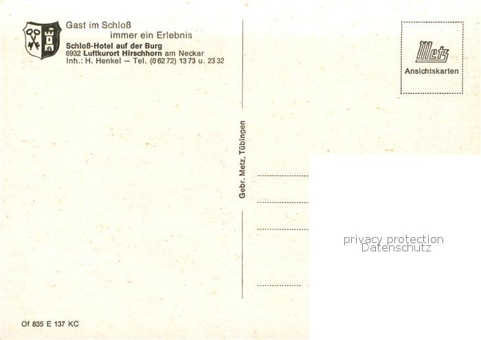 73152124 Hirschhorn Neckar Schloss Hotel auf der Burg postalisch nicht gelaufen Erhaltung siehe scans [KathaD81] KatCode: 11110006431012