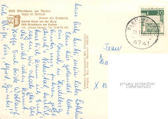 73841485 alte Postkarte Hirschhorn Neckar Schloss Hotel auf der Burg Fliegeraufnahme Neckarschleife postalisch gelaufen Erhaltung siehe scans [WerneD78] KatCode: 11110006431012
