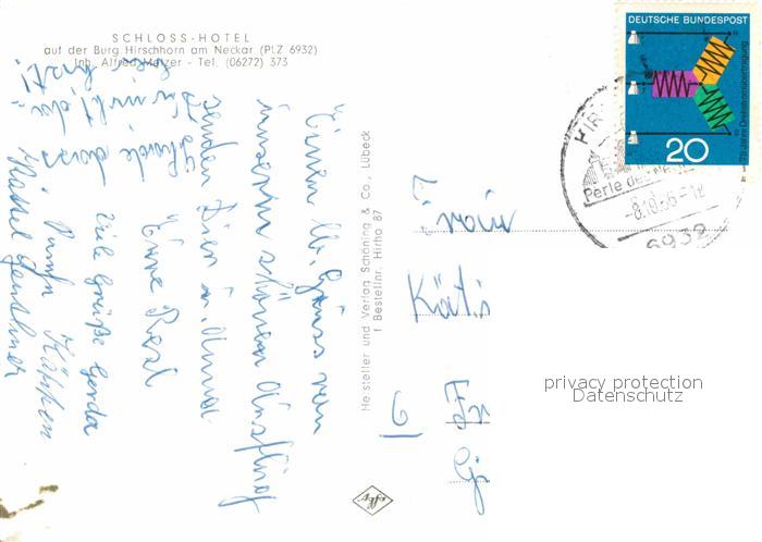 72894628 alte Postkarte Hirschhorn Neckar Schloss Hotel Burg postalisch gelaufen Erhaltung siehe scans [KathaD81] KatCode: 11110006431012