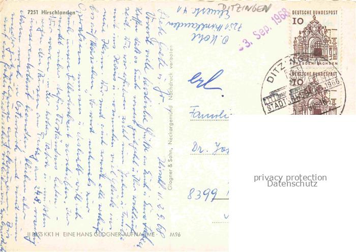 74106372 alte Postkarte Hirschlanden Ditzingen Ludwigsburg BW Ortsansichten Kirche Schule postalisch gelaufen Erhaltung siehe scans [FriedD77] KatCode: 11110008118011