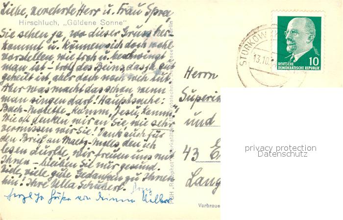 73210409 alte Postkarte Hirschluch Gueldene Sonne postalisch gelaufen Erhaltung siehe scans [FriedD77] KatCode: 11110012067481