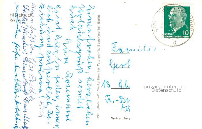 72966553 alte Postkarte Hirschluch Kranzhaus postalisch gelaufen Erhaltung siehe scans [FriedD77] KatCode: 11110012067481