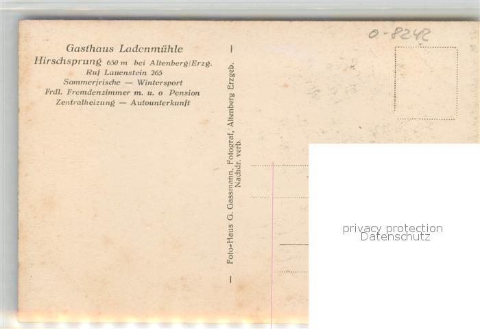 43350082 Hirschsprung Gasthaus Ladenmuehle postalisch nicht gelaufen Erhaltung siehe scans [FriedD77] KatCode: 11110014290010